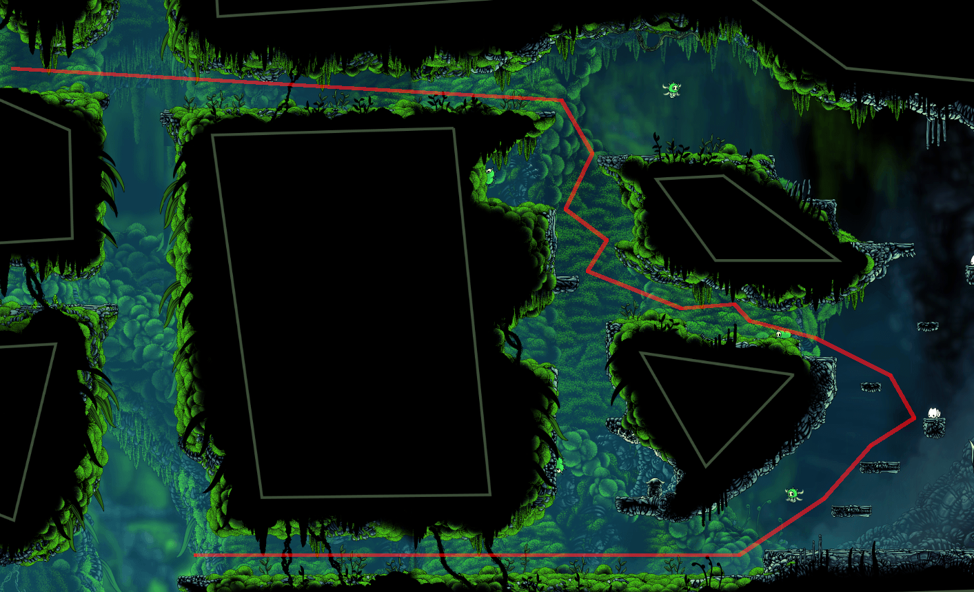 Let’s be honest, this won’t be a real fight. I have heard of a direct skip, however I just can’t do it consistently, and I hate gambling my run on failing a precise trick. So instead we’ll speedkill the boss! Wait for an attack then pogo on its head, cloak to reposition, pogo again, reposition then decide to go for left or right, and you’ll want to pogo high enough to quickly hit the explosive by attacking up at your apex. Then cloak to reposition and keep the pogo until you get the second explosive. Fall down and keep safe, you can leave now.