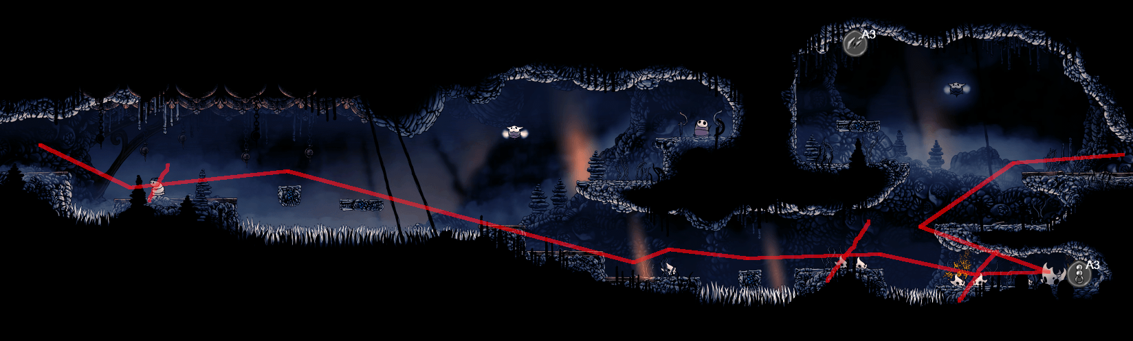 And there we go, it’s far from perfect, I blundered a few moments, but this is my full script for any%. Reaper mist is the safest for me, but most people use hunter bells, where hunter deals a lot more damage and the route is slightly faster. I gave up on it after a number of tries as I would get hit a ton more, and it started destroying my fingers because it’s a ton more mechanically active (also wavedashing is a curse you can’t prevent). Also taking the wormways and mist path makes you skip 2 boss fights and 2 arenas, why wouldn’t I want that.