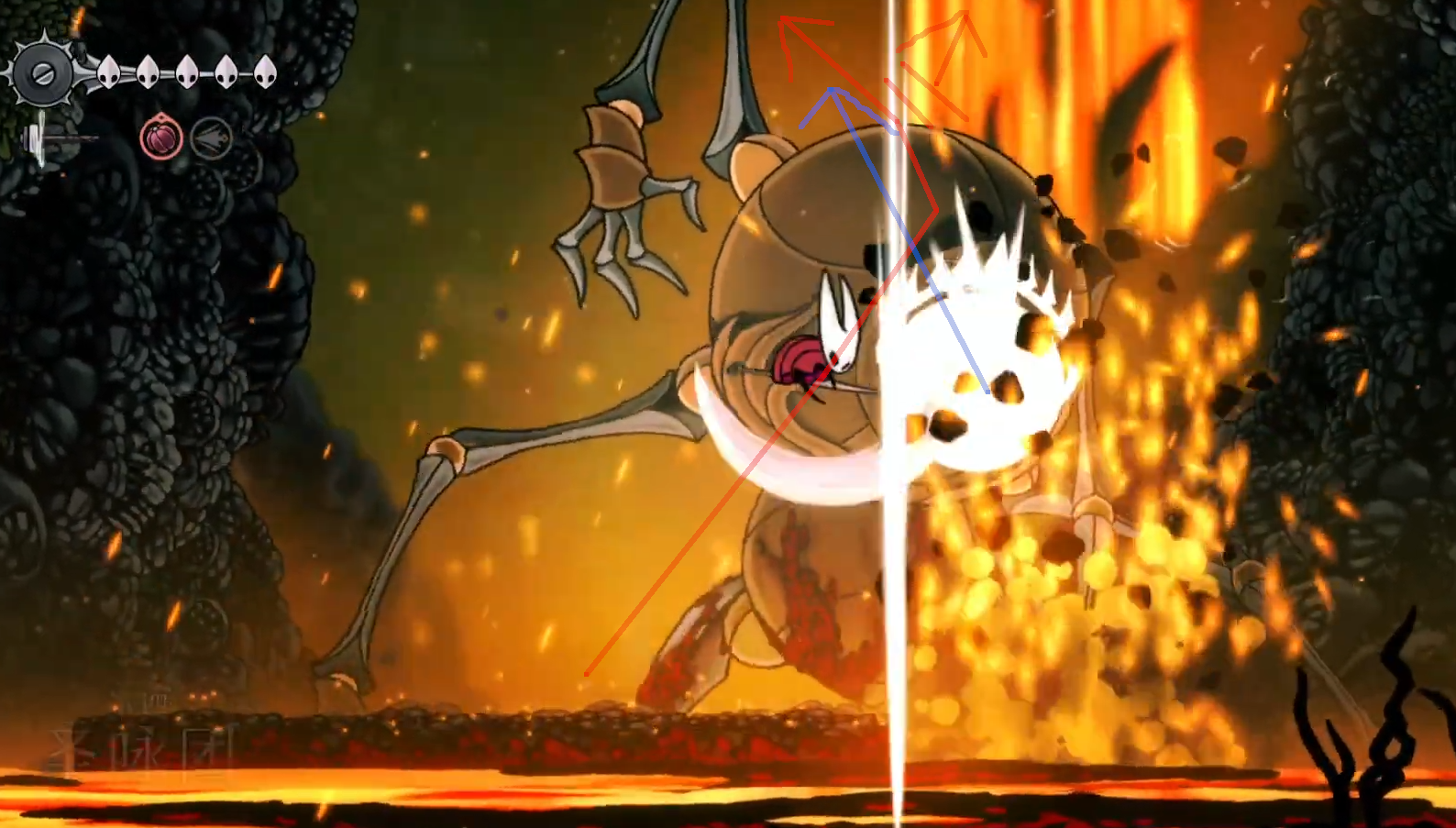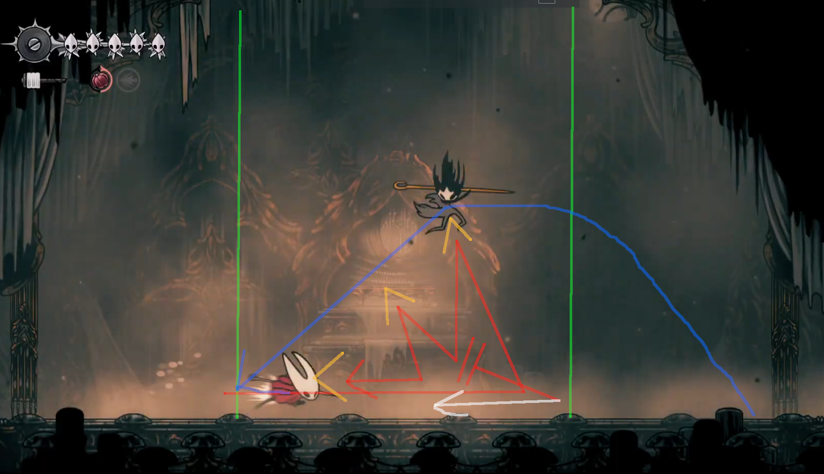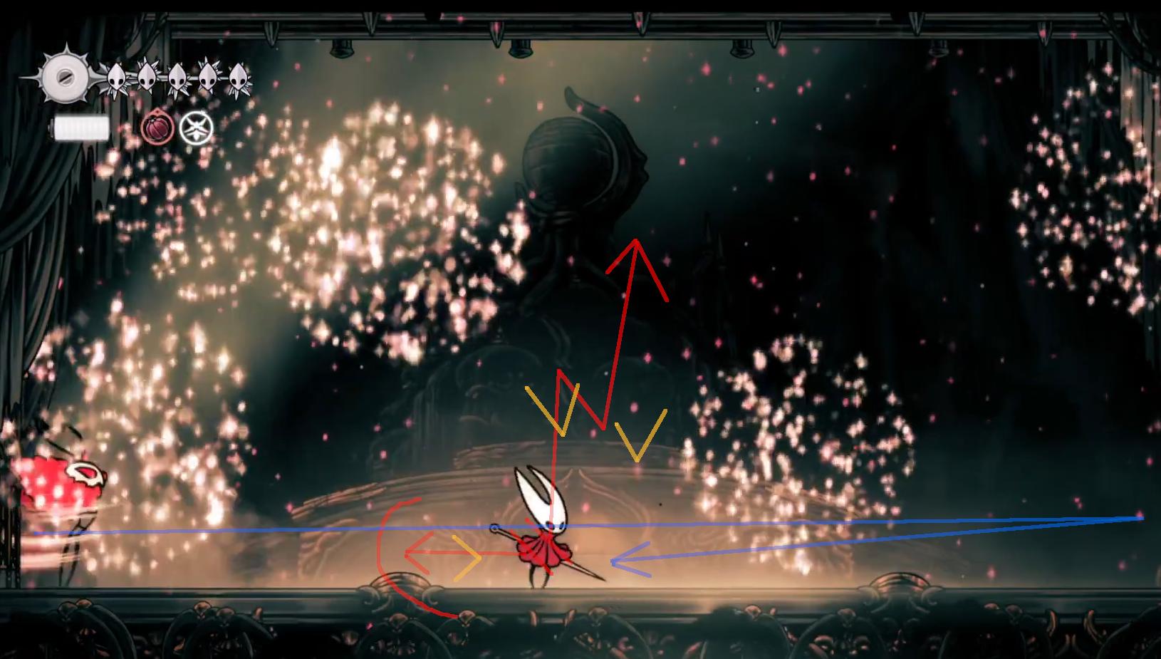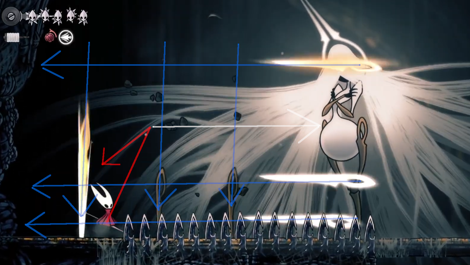Charge: When she strikes down, you can easily jump above and quickly spear, or pogo if you lack silk.